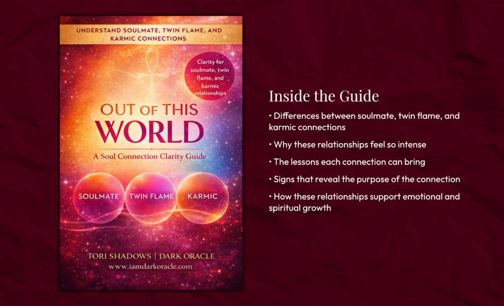 Out Of This World: A Soul Connection Clarity Guide is a short but powerful digital guide designed to help you better understand the deeper dynamics behind soulmate, twin flame, and karmic connections.